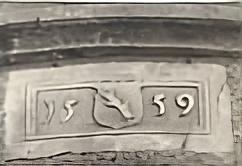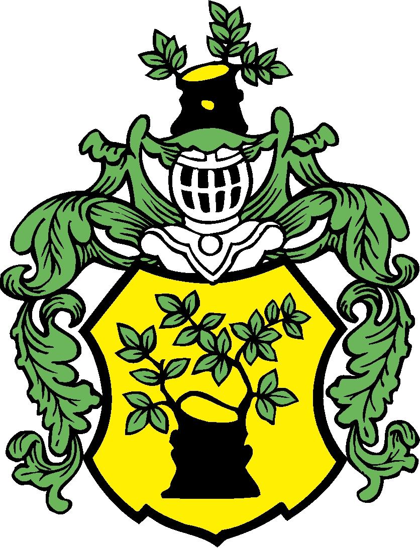 An unserem Rathaus, erbaut 1559, ist über dem Turmeingang ein Wappenbild angebracht. In einem Schild steht ein geneigter, oben abgesägter Baumstamm mit links einem und rechts zwei Aststümpfen. Unten endet der Stamm in vier Wurzeln (Abb. 4 rechts).