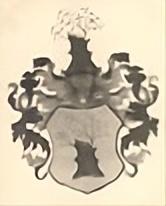 Im goldenen Schild ein schwarzer oben abgehauener Stamm, der an der Seite wieder Zweige mit grünen Blättern treibt. Über dem Schild befindet sich ein Helmvisier und darüber ragt noch einmal derselbe Baumstumpf wie unten heraus. Schild und Helm werden von einer aus stilisierten Akanthusblättern bestehenden heraldischen Form eingefasst (Abb. 6).